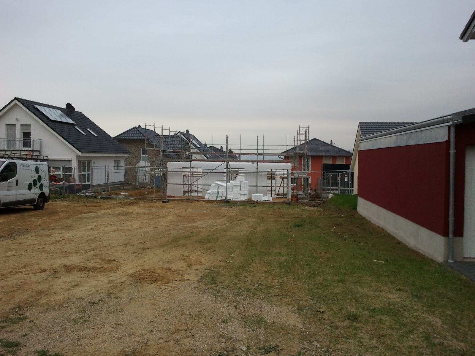 Seit heute morgen ist das Erdgeschoss fertig und die Betonierarbeiten hierfür sind beendet. Soweit wir das beurteilen können wurde sehr sauber gearbeitet und selbst die Nachbarn berichten, dass die Arbeiter ordentlich gearbeitet haben.